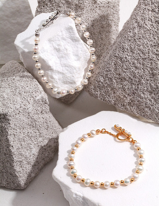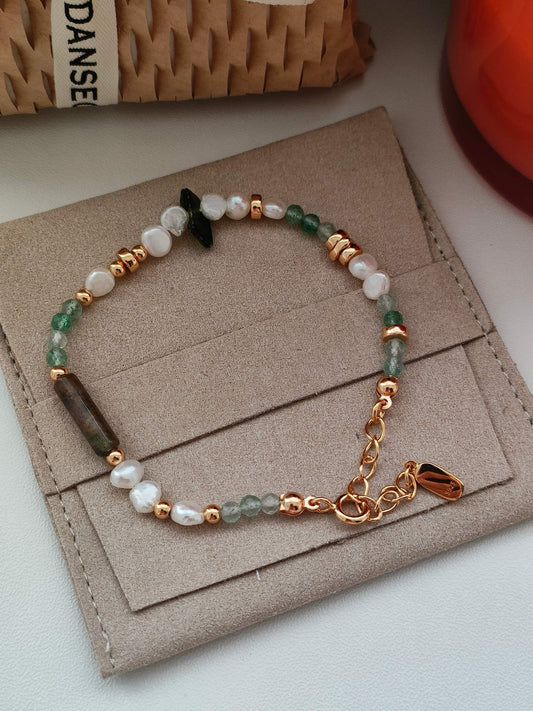Sterling Silver Fashion Bracelet with Natural Pearls and Green Fluorite Zirconia