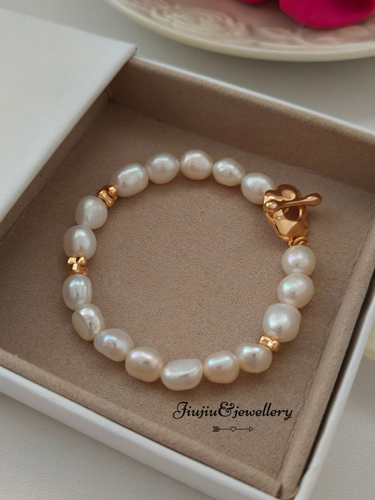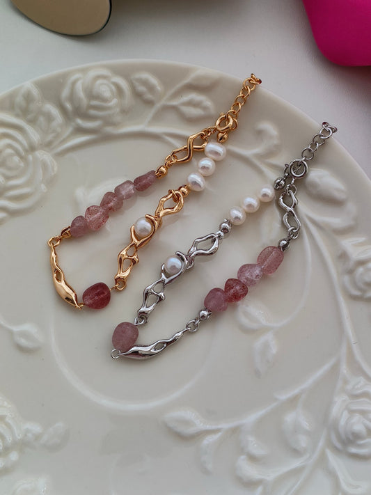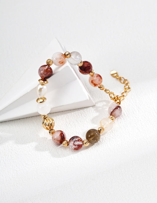 Vintage Natural Pearl Twisted Red Flower Gel Crystal Bead Bracelet