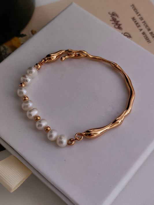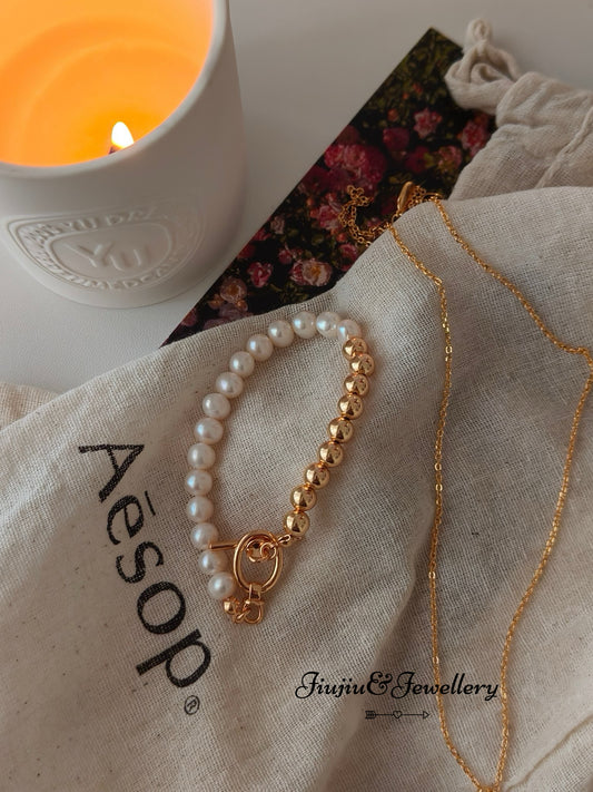 Tree Branch Tiger Eye Stone & Pearl Bracelet